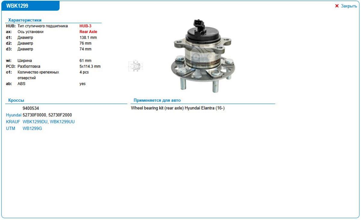 Ступица в сборе Hyundai Elantra WB1299G