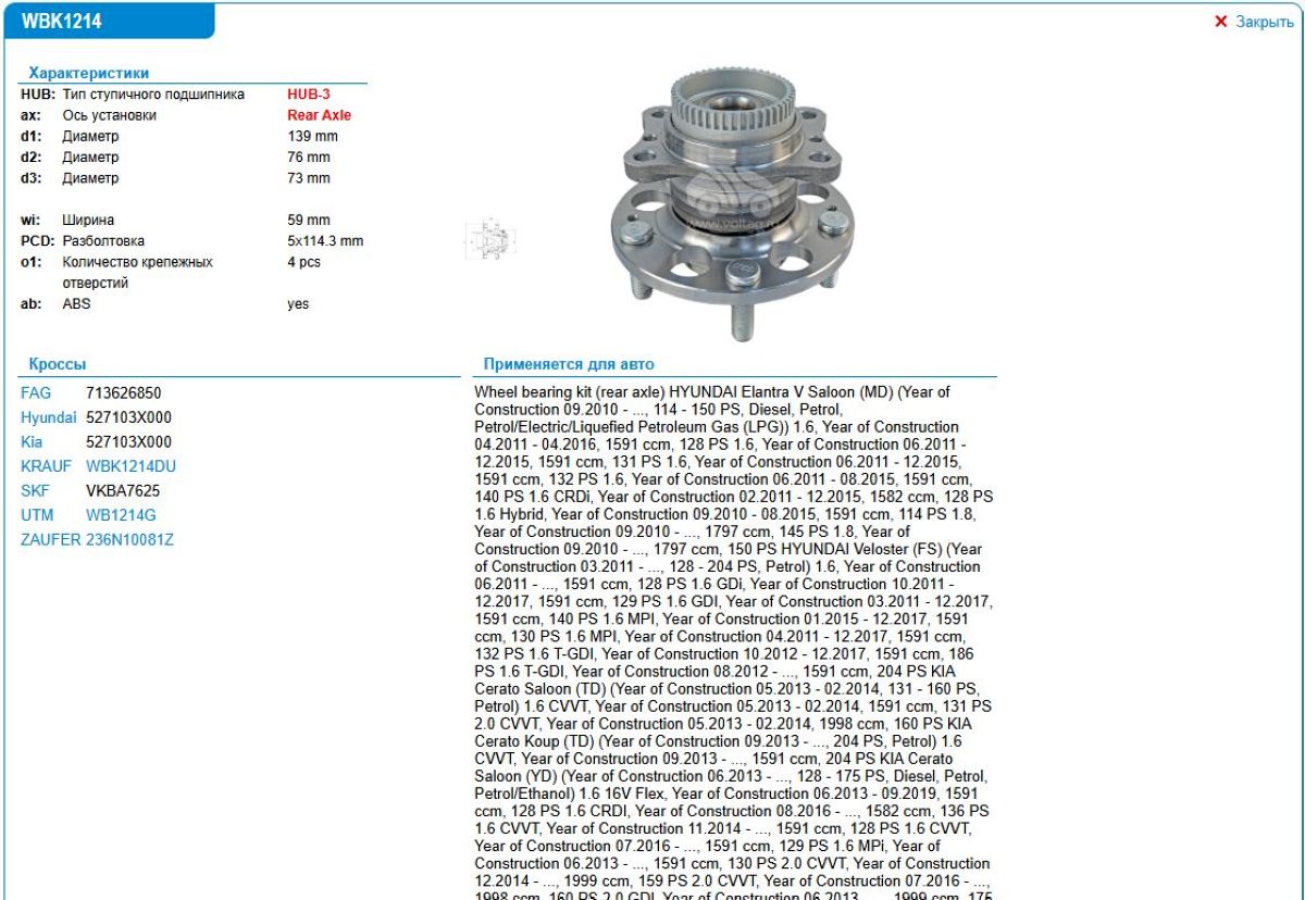 Фильтр для подбора автозапчастей