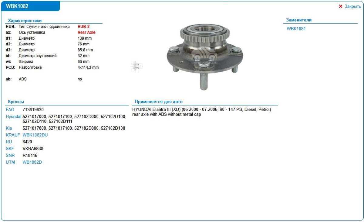 Ступица в сборе Hyundai Elantra WB1082D