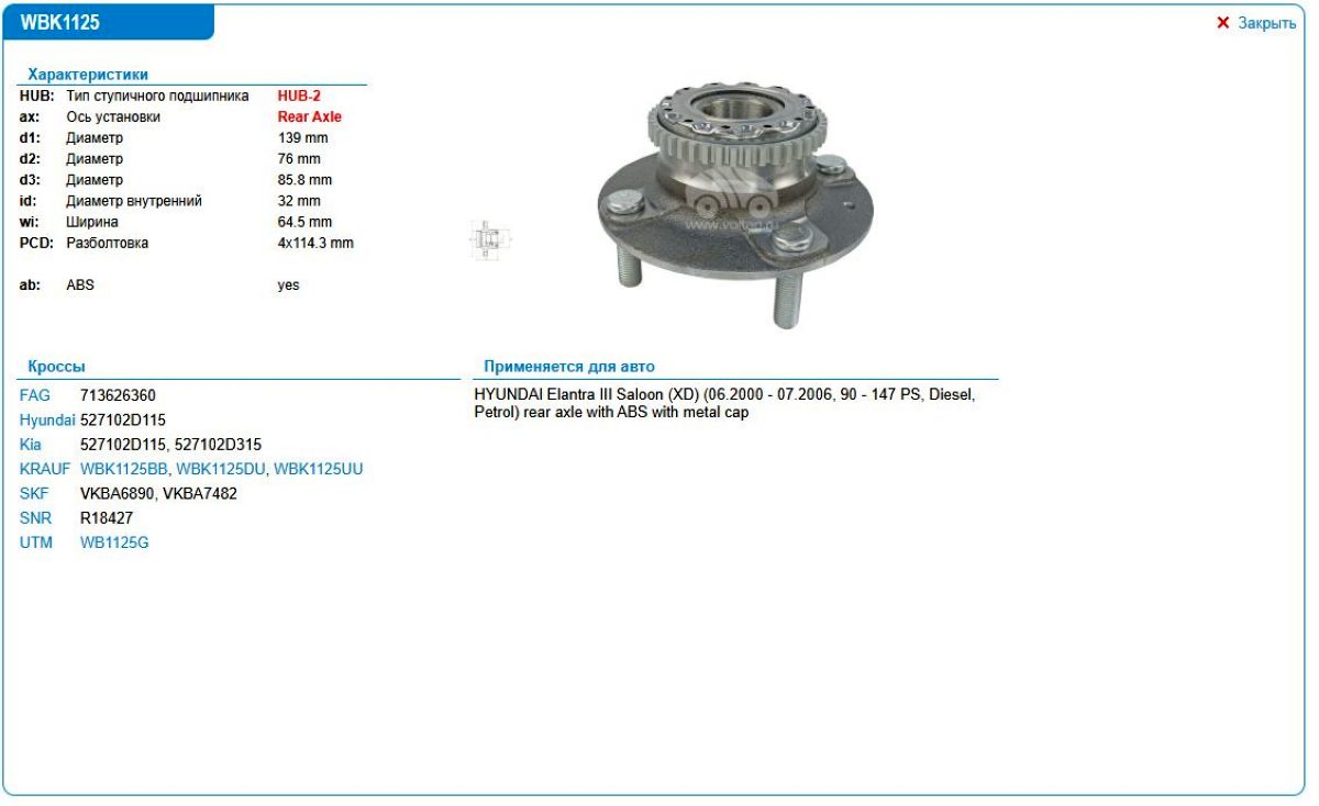 Ступица в сборе Hyundai Elantra WB1125G