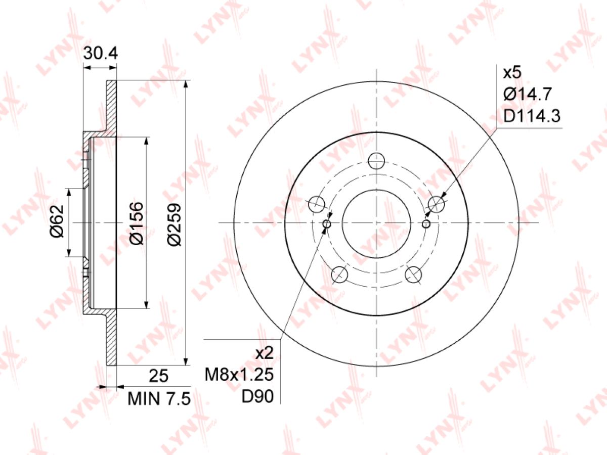 Диск тормозной задний; 259*30,4*9мм; 5 отверст.; не вентилируемый / Toyota Corolla 06-, Auris 06- Кросс номер: TOYOTA 4243102190