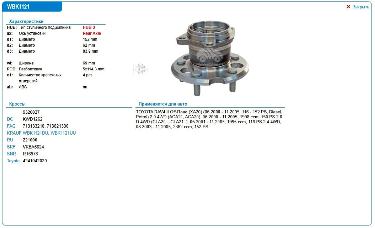 Ступица в сборе Toyota WBK1121UU