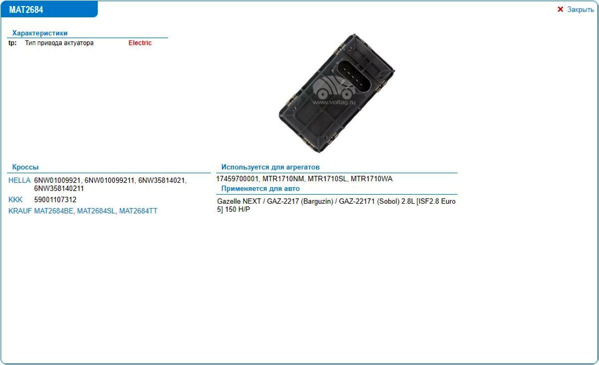 Актуатор турбокомпрессора MAT2684TT