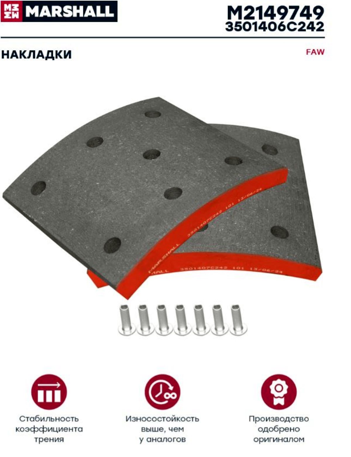 Накладка тормозная передняя J6 FAW 3501406C242