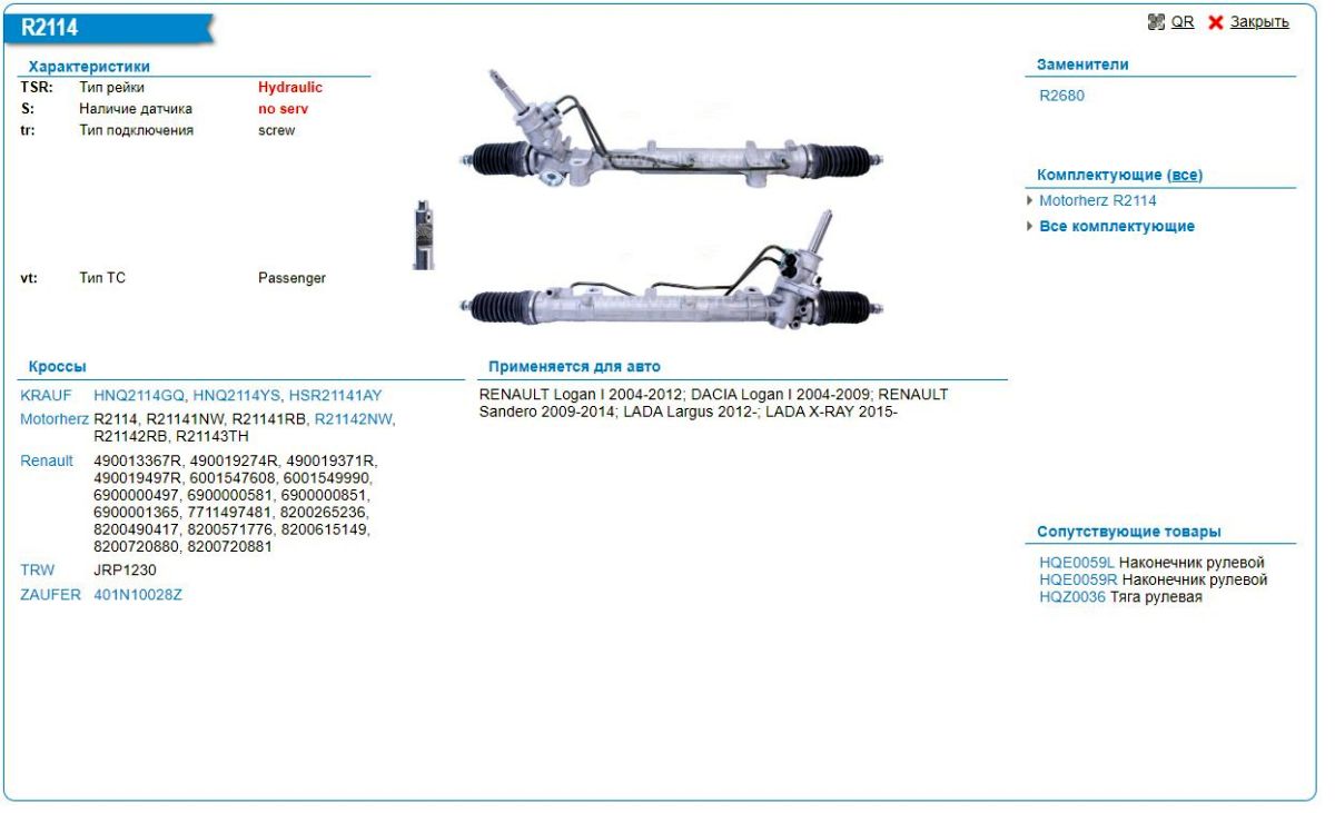 Фильтр для подбора автозапчастей