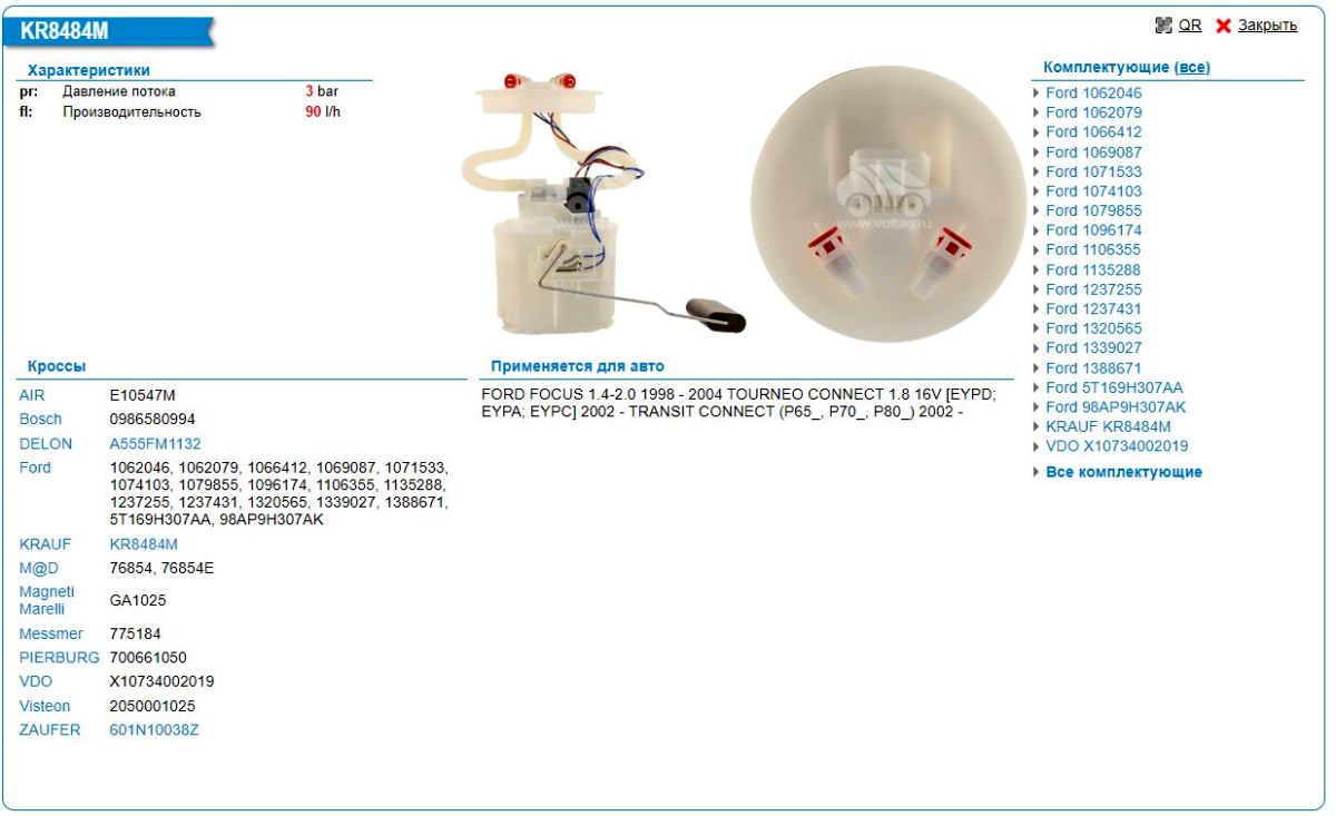 Фильтр для подбора автозапчастей