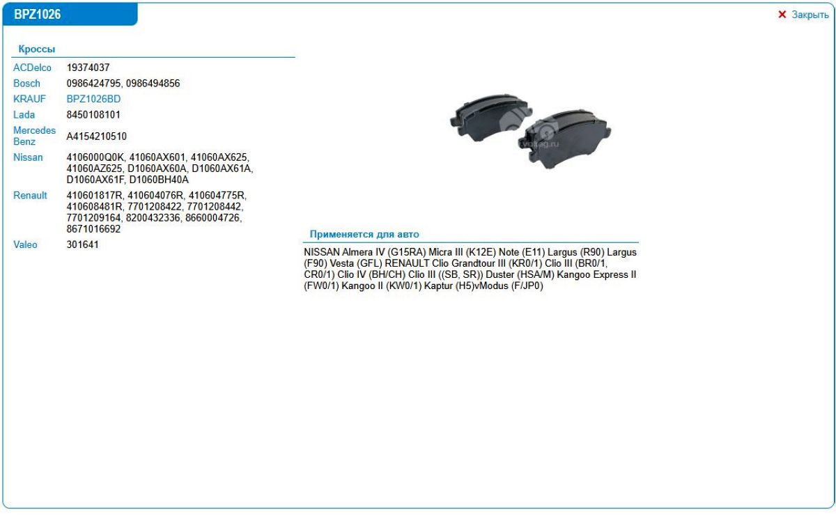 Фильтр для подбора автозапчастей